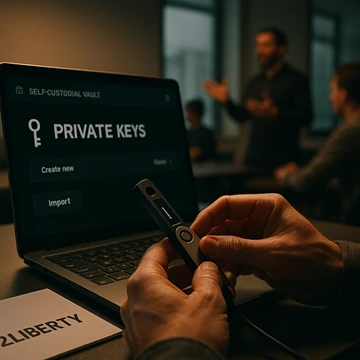21LIBERTY mentors clients in setting up self-custodial wallets or vaults, empowering them to take full control of their private keys and secure their wealth with institutional-grade security through open-source tools.